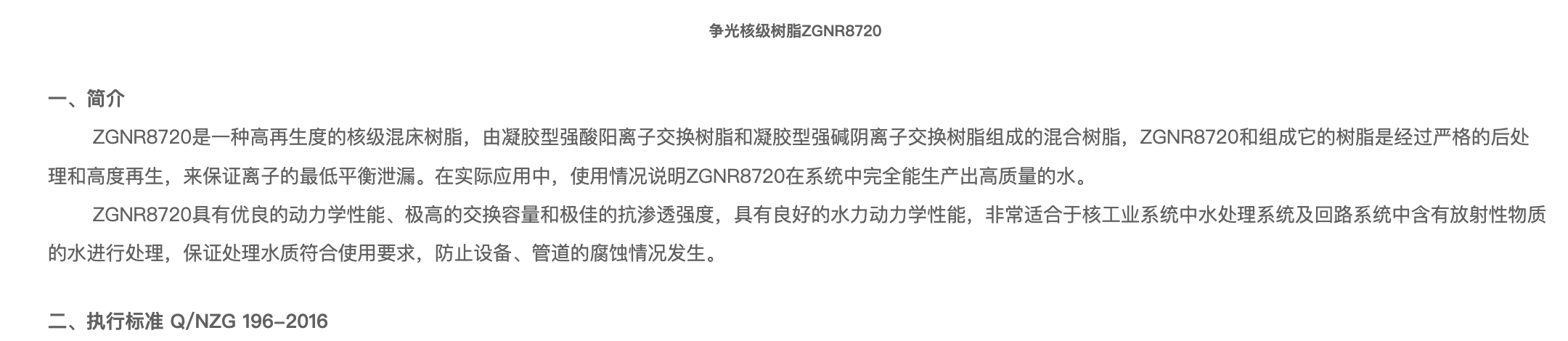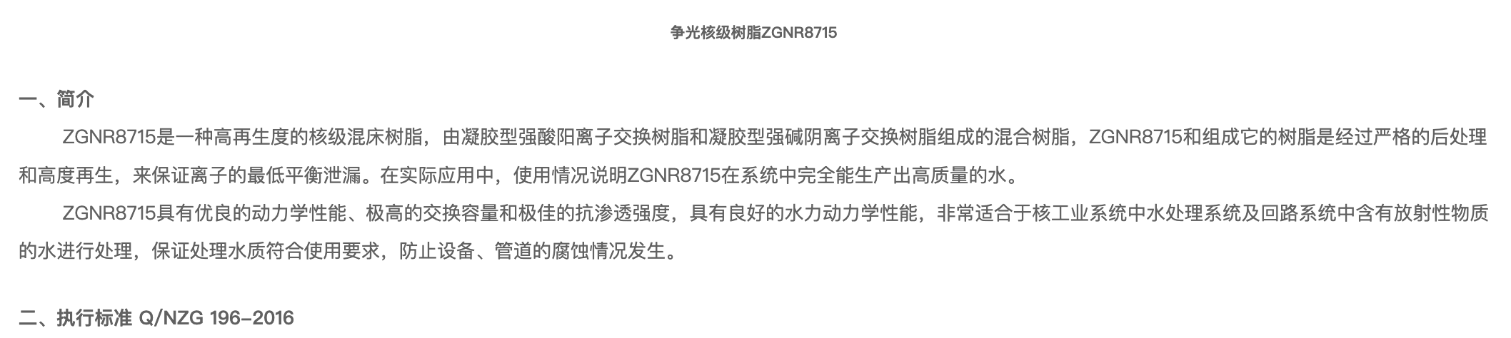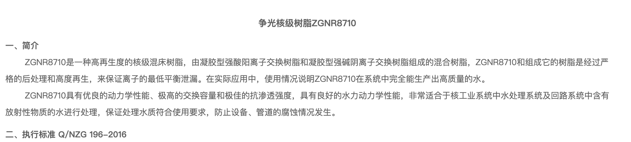 下一個: ZG NR 8715 核級混床樹脂 上一個: ZG NR 8420 核級混床樹脂